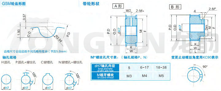 規格 形狀 節徑P.D 外徑O.D 擋邊外徑F 擋邊內徑M 輪轂直徑Dm 內孔dH7